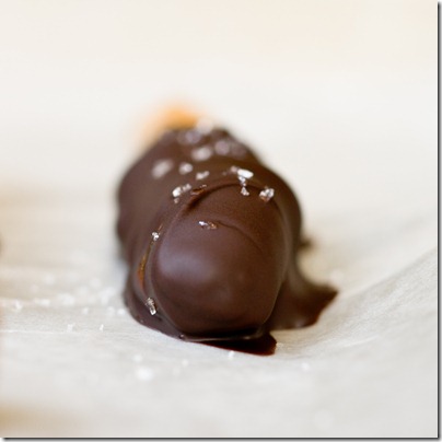 Let me pause to tell you that I absolutely love what I am doing.  But on weeks when I am busy processing orders for my regular cookies, brownies and bars, I miss my moments of creativity.  That is part of why I love the Cookie of the Month Club and a huge reason why I won’t stop blogging.  There is always something new and fun to do in the kitchen and I don’t want to lose those opportunities.  So when I finally had a few minutes of “play” time, I did something that I’ve wanted to do for a while.  I dipped pretzels in cookie butter and then in chocolate and sprinkled some sea salt in top.  Addicting snack? Father’s Day gift?  Party dessert?