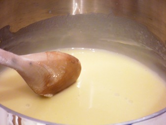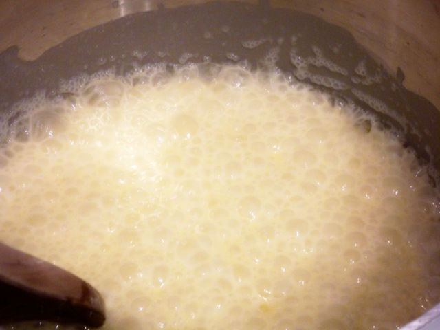 Reduce the heat to low and add cream; stir continuously until mixture bubbles
