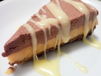 Frozen Pumpkin and Chocolate Yogurt Pie with Salted Caramel Cream Sauce