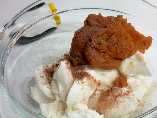 Fold in the pumpkin and pumpkin pie spice until well combined