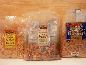 This weekend I decided to make something different with what I had on hand, a Mixed Fruit and Nut Butter. Since I had 3 bags of nuts already open, I decided to combine them: Honey Roasted Peanuts, Roasted Almonds, and Roasted Cashews
