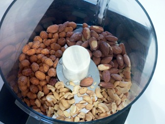 1. Start by combining the nuts in a food processor for about 5 minutes; scrape the sides every minute or two