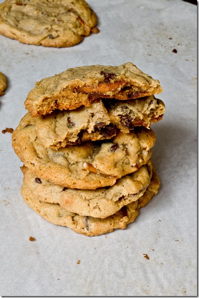 So the good news for you? I made a few things that I really want to share the recipes for. These cookies for instance, make them. You know how much I love chocolate and peanut butter and this cookie is no exception. Thick and chewy (like most cookies should be), with a little crunch from those salty pretzels. Seriously, just make them.