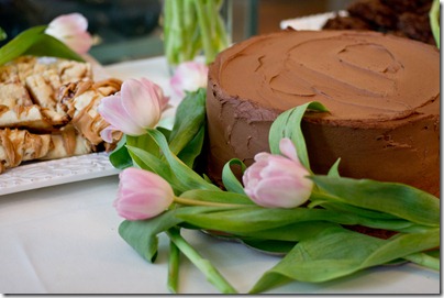 Oh, and did I mention my mom’s perfect touch to the dessert table? How gorgeous are these pink tulips. They added the perfect pop of color to the table and to our room.