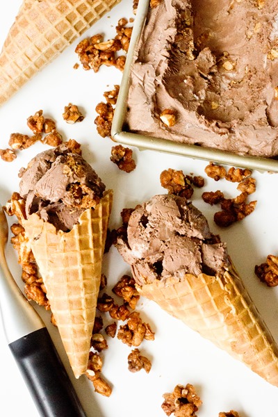 No Churn Chocolate Ice Cream with Salty Candied Peanuts